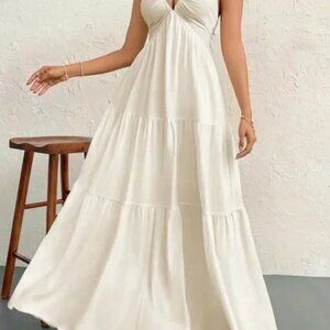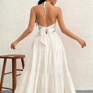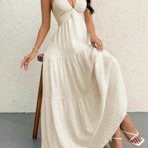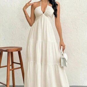 Romantic Beach Vacation Halter V-Neck Pleated Backless A-Line Dress