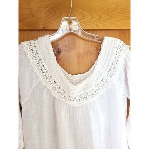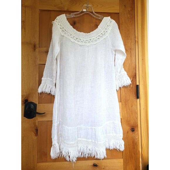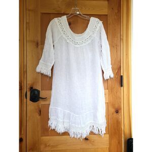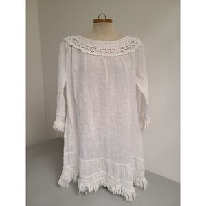 Romantic Boho 100% Cotton White Mini Dress Swim Cover Up Resort Vacation MEDIUM