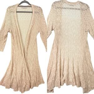Romantic Crochet Duster Womens SIZE MEDIUM two-one-two NY Ivory Open Cardigan