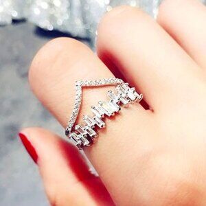 😍Romantic Design Tiny Rectangle Gems Twisted Double Layer Silver Ring, L227