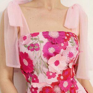 Romantic Elegant Women's Floral Applique Spaghetti Strap Maxi Dress