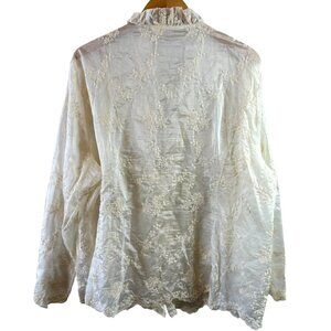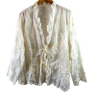 Embroidered Ivory Sheer Ruffle Tie Jacket – Approx. Women’s 3X