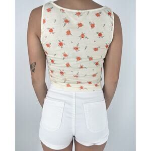 Romantic Floral Boho Ruched Cream Top Size XS