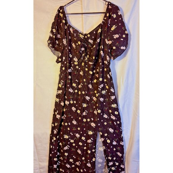 Romantic Floral Dress Sexy Slit Cottagecore Indie Dark Academia Womens Plus 2X