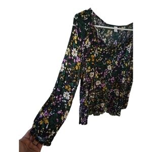 Romantic Floral Top Old Navy Long Sleeve Peek a Boo Neckline Lightweight L Girly