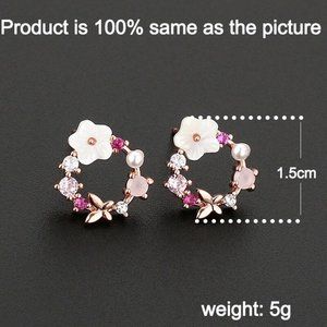 Romantic Flowers Shell Earrings Rose Gold Zircon P