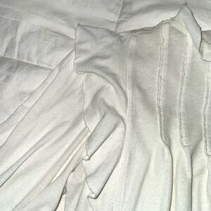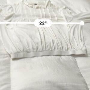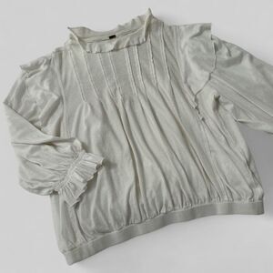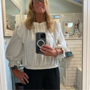 Romantic Free People Victorian Inspired White pleated blouson top with flutter neck and puff sleeves size small