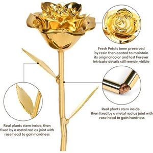 đź’• Yes, the Anthonic Rose is equipped with 24K gold. Therefore, you can see the shining golden surface. It has two clad layers. The base is made of brass, and 24K gold is electroplated on the brass surface. But what we must declare is that the rose is 24K gold plating, NOT all 24k gold. "24K gold rose" is the industry's common name for this product.