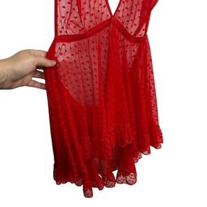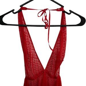 Romantic glam red sheer heart mesh halter babydoll lingerie dark feminine 2X/3X