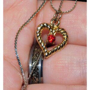 Elegant open heart pendant necklace crafted in gold with a stunning red rhinestone accent. Perfect for adding a touch of romance to any outfit. Ideal gift for that special someone or a lovely treat for yourself.