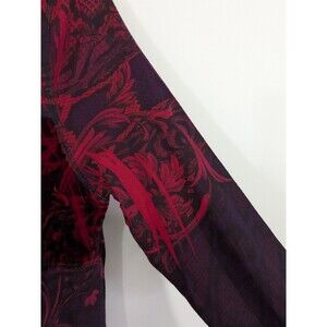 This Romantic Goth Fairy Red Black Long Sleeve Velvet Burnout Blouse Renaissance in size M is perfect for women who love a blend of romance and goth style. The Baroque pattern and velvet inserts add a touch of elegance, while the V-neck and classic/fitted sleeves offer a flattering silhouette. Made from a comfortable blend of polyester and spandex, this blouse is ideal for all seasons and features a pullover closure for ease of wear. With a vintage vibe and accents that nod to various themes like gothic, punk, and retro, this blouse from Style and Co is a must-have for any fashion-forward individual.