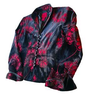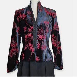 Romantic Goth Silk Blend Velvet Burnout Evening Jacket Floral Statement