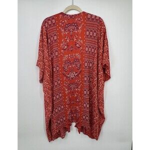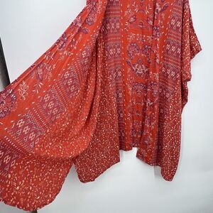 Romantic Gypsy Kimono Duster Cover Up Boho Red Floral Sz S Oversized Festival