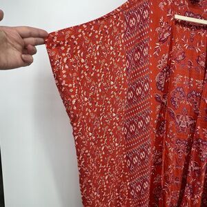 Romantic Gypsy Kimono Duster Cover Up Boho Red Floral Size Small Oversized Festival