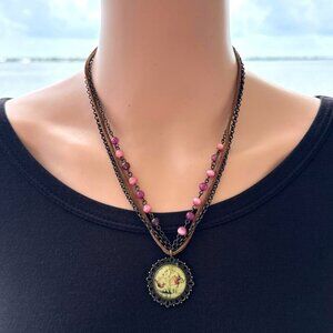 Romantic Hummingbird Pendant Necklace Triple Strand Adjustable Length