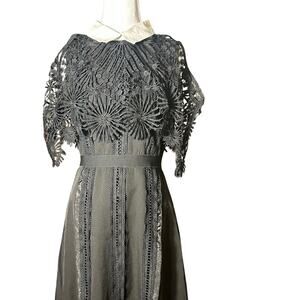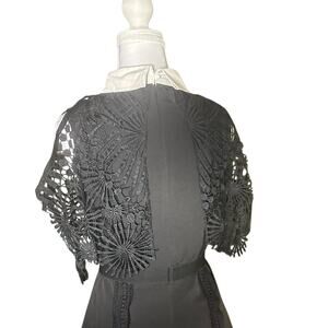 Romantic Lace Collared Whimsey Goth Wednesday Adams Black Belted Medium Dress
