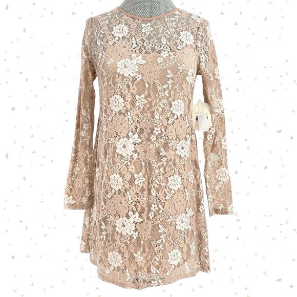 Romantic Lace Dress Boho Nude Tan Floral Long Sleeve Altar'd State Rauma Size S