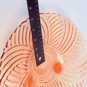 Romantic Pink Depression Glass Bowl Swirl Ribbed Footed Plate Scalloped Home Dec
