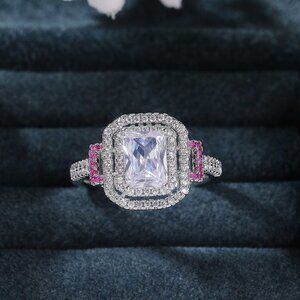 Romantic Radiant Shiny Zircon Hollow Silver Ring Women for Women, L097