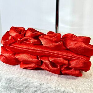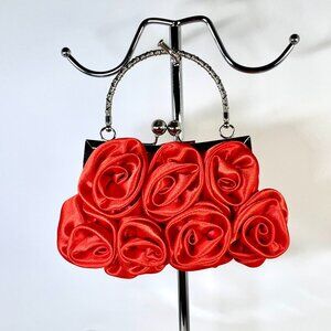 Make a bold, romantic statement with this stunning red satin handbag, designed with dimensional rose detailing that covers the entire surface. Crafted from soft satin fabric, this clutch-style purse features a structured silhouette, decorative silver-tone handle, and secure clasp closure. Whether you're attending a wedding, prom, or evening gala, this floral handbag adds elegance and drama to any outfit. A favorite among vintage lovers and formalwear stylists, it’s the perfect accessory for bridesmaids, party guests, or collectors of unique fashion pieces.
