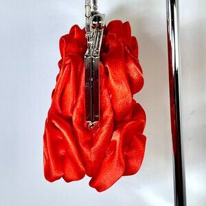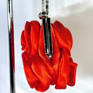 Romantic Red Rose Satin crossbody Handbag – 3D Floral Clutch for Events