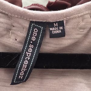 Super cute and romantic racer back tank with fabric roses around the neckline. Tank is super soft maybe color with slightly heathered appearance. Lightly worn, no loose or missing roses