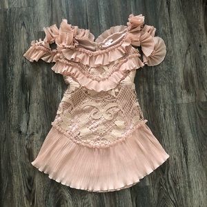 Mini dress with lace and ruffled details. Beautiful for spring!