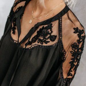 Romantic Sheer Chiffon Floral Embroidery Blouse