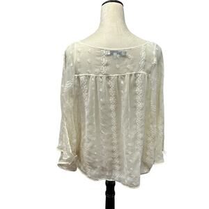 Romantic Sheer Embroidered Boho Blouse Jennifer Lopez White XS