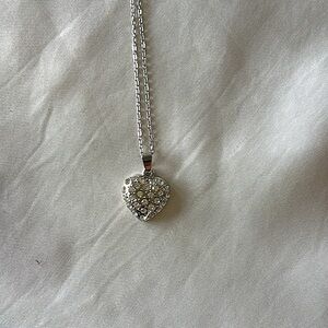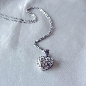 Tags: #HeartNecklace #RhinestoneJewelry #SilverToneNecklace #SparklyPendant #MinimalistJewelry #VintageStyle #GiftIdea #RomanticJewelry #StatementNecklace #PoshFinds #CrystalHeart #WomensJewelry #EverydayGlam #AffordableJewelry