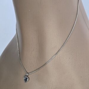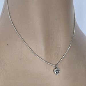 Timeless silver heart pendant and dainty box necklace set. The diamond cut heart features an old English style "J" with traditional enamel inlay. The 1mm box chain is the perfect delicate accent with an 18" so it sits nicely on the collarbone. 2.5 grams total with 925 stamped. Beautiful piece to present to your significant other!
