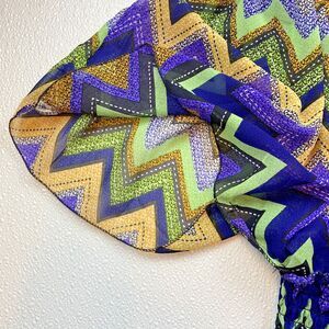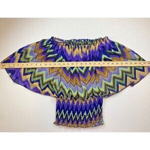 Romantic Sini Chevron Pattern Bat Wing Sheer Women's Top Size Large