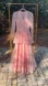 Soft pink long-sleeve maxi dress featuring a sheer dotted mesh overlay and fully lined interior. The flattering peplum waist and tiered skirt create a classic vintage silhouette with a modern twist.