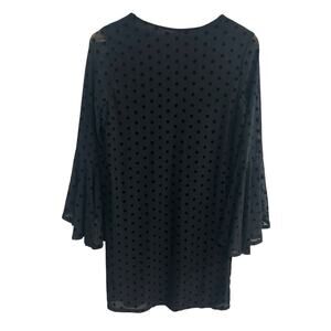 • Design Features: Sheer mesh overlay with flocked polka dots, layered bell sleeves, lined body