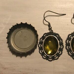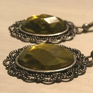 Romantic vintage look, green yellow earrings, regency, victorian, Austen vtg