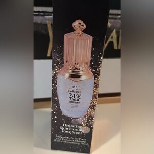 Luxurious 24K Gold Collagen Primer by Romantic Beauty. Enhances skin with a hydrating rose scent.