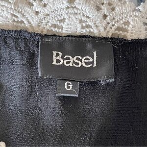 This elegant black top features intricate lace trim, perfect for adding a touch of sophistication to any outfit. Ideal for both casual and formal occasions.