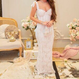 Worn for my rehearsal dinner. Purchased brand new. Gently used and dry cleaned. Dress is a size 0.