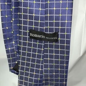 Romario Mancini Blue, white and yellow Tie 58.5” L 4” W