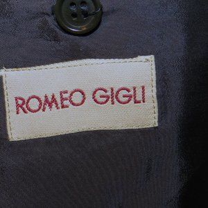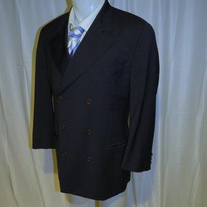 Romeo Gigli Vintage Solid Blue Peak Lapel Double Breasted Suit Jacket 40R