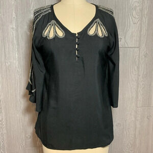 Romeo & Juliet Couture Black Beaded Blouse M NWT