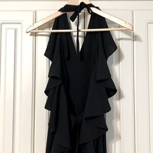 Romeo & Juliet Couture Black Small V Neck Ruffled Halter Pant Jumpsuit
