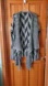 Soft open cardigan by Romeo + Juliet Couture. Shawl collar is striped. Chevron pattern on back and sleeves. Long sleeve. Approx 32in in back (front fall is 43in at longest), 26.5in sleeve (dropped shoulder) 20.5in bust when hanging
