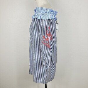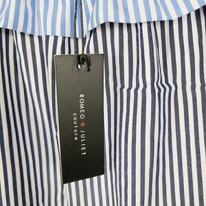 Romeo & Juliet Couture Blouse S Blue Striped Embroidered Sleeve Off Shoulder NEW