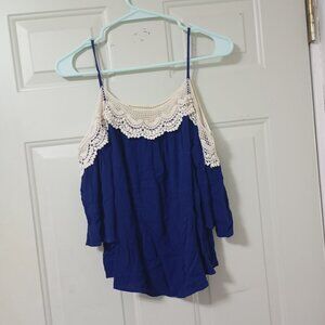 Romeo & Juliet Couture Blue Lace Trim Cami Top S 3/4 Sleeve With Bare Shoulders