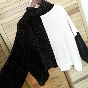 Romeo & Juliet Couture Chenille Knit Colorblock Turtleneck Boxy Sweater Size L