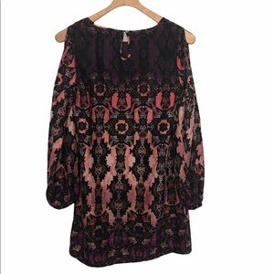 Romeo & Juliet Couture Short Cold Short Sleeves Dress. Beautiful geometric print dress. Multicolor, purple, peach, orange and black.
