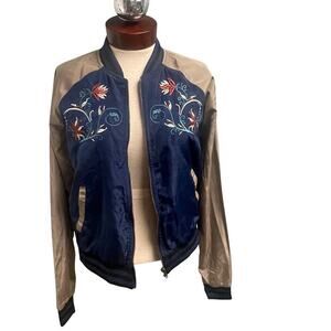 Romeo + Juliet Couture Embroidered Jacket Size Medium Bomber Floral Full Zip