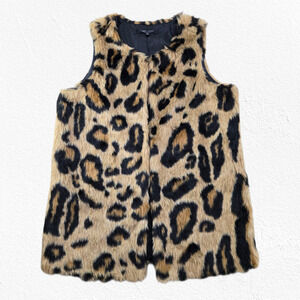 Romeo Juliet Couture Faux Fur Leopard Print Vest Hook Eye Pockets Size Small