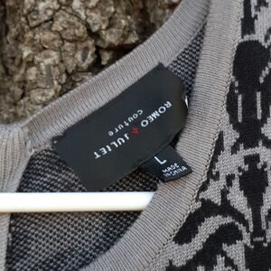 It's a cute grey & black fleur de lis sweater dress by Romeo & Juliet Couture in size large.